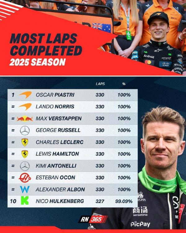Это ТОП-10 гонщиков, которые прошли наибольшее количество дистанций в нормальных гонках (без спринтов). Но! Хэм, Леклер и Хюльк были дисквалифицированы в некоторых гонках. Вопрос в том: считается ли, что эти гонщики прошли 100% гоночных дистанций?