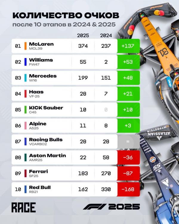Средняя оценка за сезон-2025 (сайт «Формулы-1»)