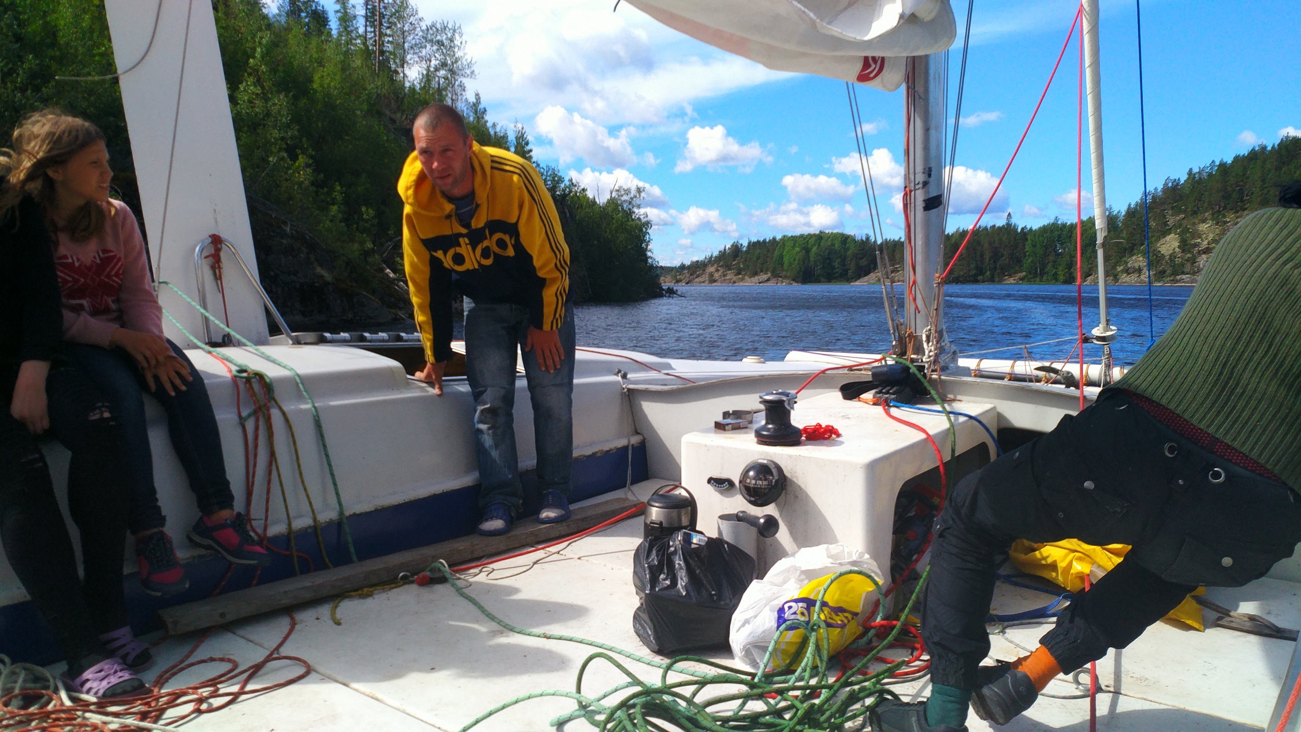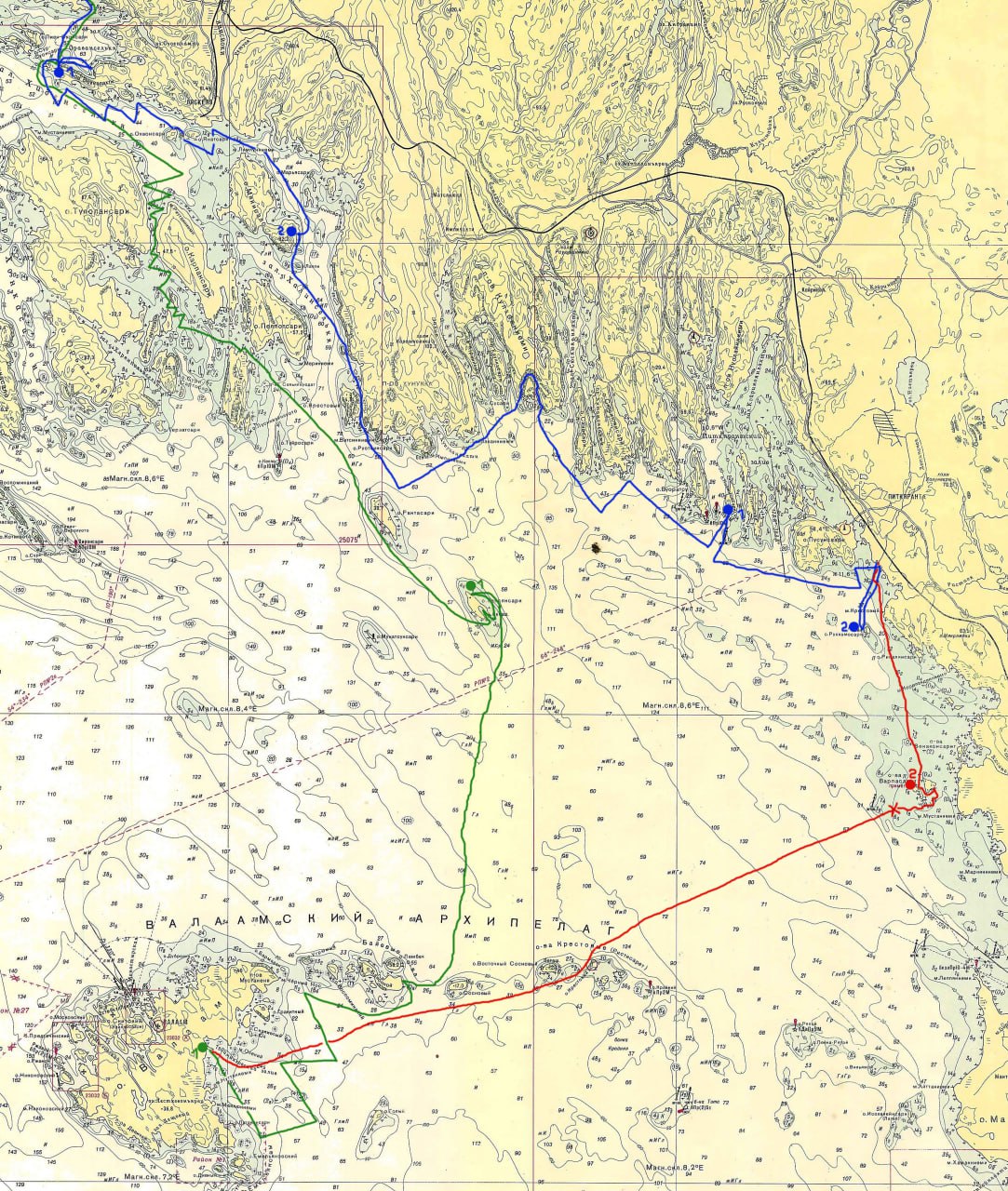 Я и два друга. Один из них сошел в середине маршрута в Рауталахте (самая верхняя точка на карте маршрута), оттуда он на автобусе в Питкяранту поехал к своей машине. "Зеленую" и "красную" часть пути шли уже вдвоем.